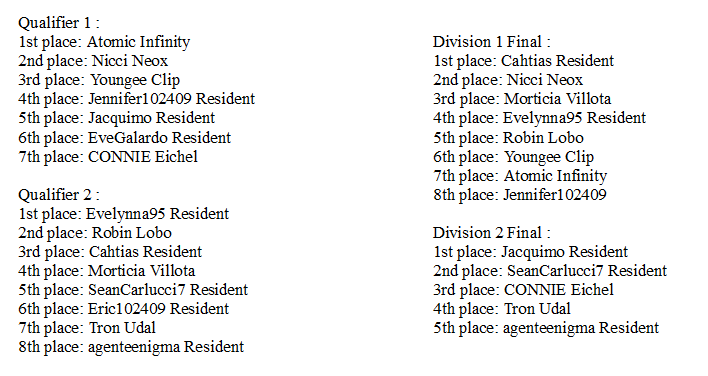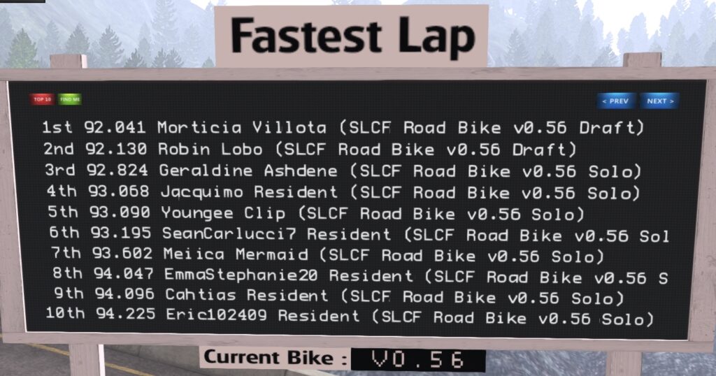 I risultati della gara ciclistica della community SLCF (Second Life Cycling Federation) al Community Gateway Coliseum: